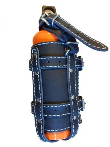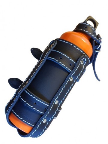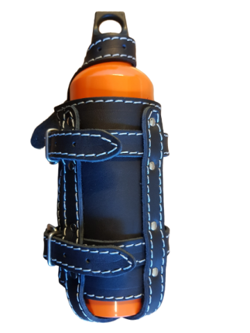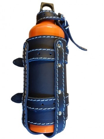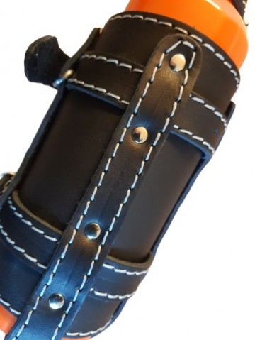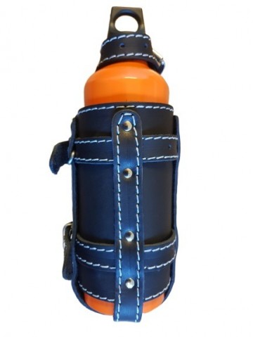 Deze leren brandstof fles houders zijn mooi afgewerkt doormiddel van oranje stiksels.