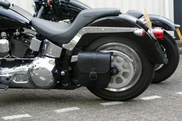 Kleine leren motortas voorSoftail. Voor wie toch het een en ander mee wil nemen op de motor.