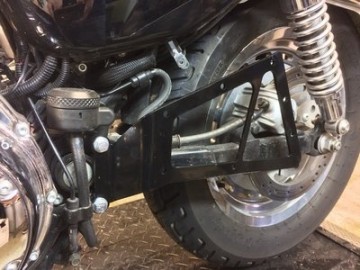 Groter formaat dan zijn voorgangers en wordt bevestigt aan een beugel,aan de schroefbevestigingen van de achter voetsteunen (deze dienen dus verwijderd te worden)