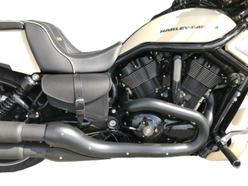 Deze tas wordt bevestigt aan de rechterkant van je V-ROD doormiddel van 2 leren bandjes.