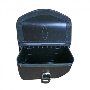 Deze tas wordt bevestigt aan de linkerkant van je V-ROD doormiddel van 2 leren bandjes.
