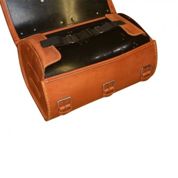 Deze Motorkoffer is makkelijk te bevestigen achter op bagagerek of achterspadbord of sissybar doormiddel van 5 leren riempjes.