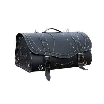 Deze Motorkoffer is makkelijk te bevestigen achter op bagagerek of achterspadbord of sissybar doormiddel van 5 leren riempjes.