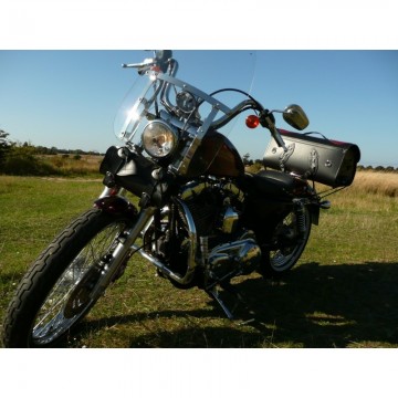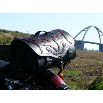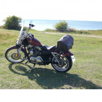 Deze Motorkoffer is makkelijk te bevestigen achter op bagagerek of achterspadbord of sissybar doormiddel van 5 leren riempjes.