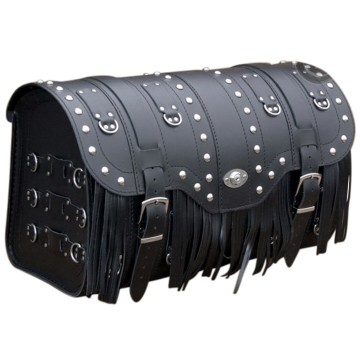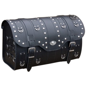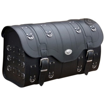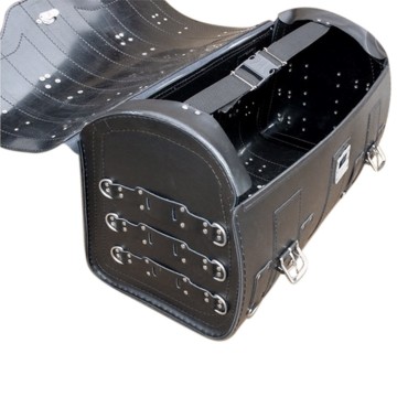 Deze Motorkoffer is makkelijk te bevestigen achter op bagagerek of achterspatbord of sissybar door middel van 5 leren riempjes.