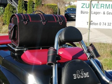 Deze trike koffer set bestaat uit 1x topkoffer 2 x leg protection bar koffers 1 x toolrol en 2 x cupholders 33cl.